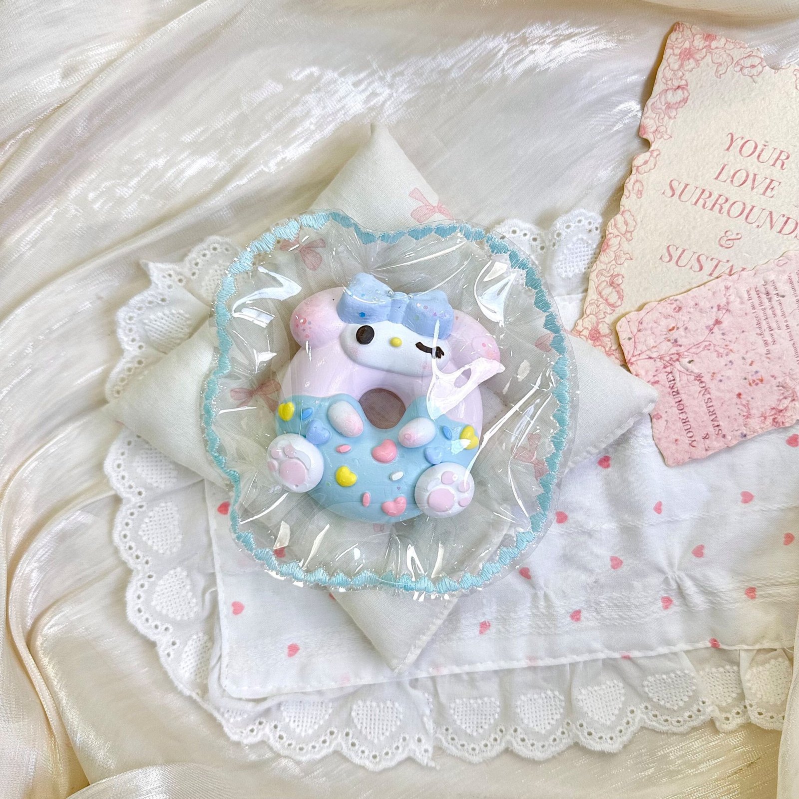 | donut | Pink Kitty Donut, Yellow Bunny Donut, Pink Bunny Donut, Purple Kitty Donut, Doggy Doughnut, Lamb Donut |